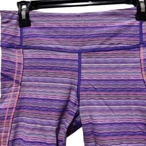 ☃ Color: Purple-toned horizontal stripe pattern with coral pink seam accents for a vibrant, athletic look.