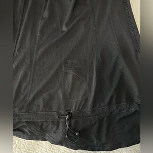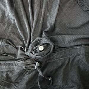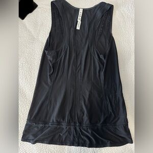 Lululemon Women’s Tank Top- Size 8. Lightly used, some slight visible wear & intermittent areas of pilling throughout. Features a small side pocket (photos #5-6) & an adjustable waist drawstring. The last two photos are of interior (posed inside-out) This version is unlined (no area for removable bra pads). Nice looking tank overall- has interesting/unique features.