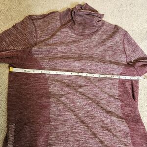 Lululemon Woolly Wonder Turtleneck Merino Wool Blend Long Sleeve Shirt Size 12 pre-owned and in good Pre-owned condition naturally insulating temperature regulating sweat-wicking soft handfeel naturally breathable measurements in pictures please double check against your own style tags gym, workout ,sweatshirt lulu, cozy, comfortable, soft, gorpecore, yoga, run, running, baselayer, underlayer, cozycore