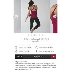 Lululemon Wrap it Up Tank Top Shirt Red V-Neck Wrap Cross Front Cranberry 12