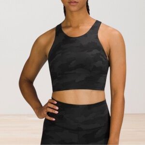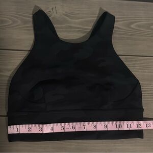 This Lululemon longline bra offers medium support with a flattering, extended cut. Made from Everlux fabric for a cool, breathable feel during high-sweat workouts. Stylish and functional in a sleek black camo print — perfect for the gym or athleisure wear!