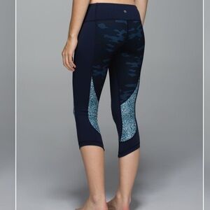 Lululemon Wunder Under Crop Full-On Luon Size 4 in Camo Blue