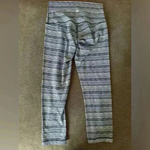Lululemon Wunder Under Crop High Rise Blue Multi Coloured Stripe Size 6 Luon