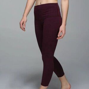 Lululemon Wunder Under Crop II *Cotton (Roll Down)Heathered Bordeaux Drama-Size4