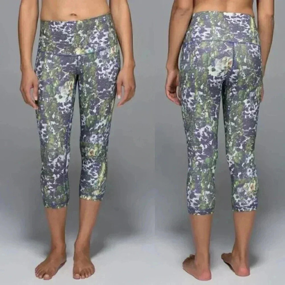 Lululemon Wunder Under Crop II *Full-On Luxtreme (Roll Down) Floral Size 4