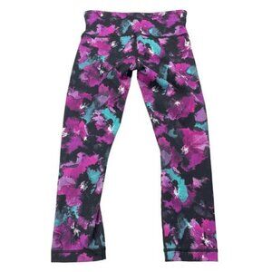 Lululemon Wunder Under Crop III In Midnight Bloom Black Deep Fuschia Size 4