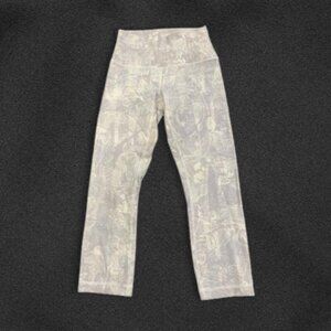These Lululemon Wunder Under crop leggings in size 4 are the perfect combination of style, comfort, and performance. The high-rise waistband offers extra support and keeps you comfortable throughout your workout. Designed with a trendy grey and white print, these leggings stand out whether you’re in the gym or out running errands. The tight, cropped fit allows for easy movement, making them perfect for yoga, Pilates, or any workout session.