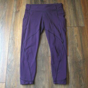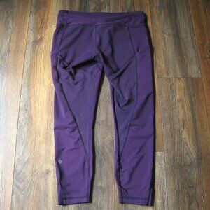 Lululemon Wunder Under purple tight size 10. There's no tag, but the material feels like their Luxtreme fabric. They have a double waistband and a section of mesh in the back. Very minor wash wear, overall they are in very good used condition. Waist 15.5", rise 9", inseam 26".