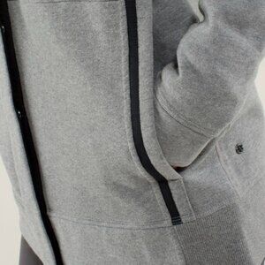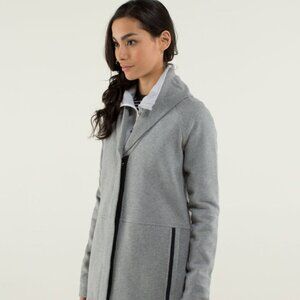 Locking in post-practice heat is the key to hanging on to our warm fuzzies. We designed this cozy cardi with soft Cotton Fleece fabric and a tall collar to do just that. A hidden phone pocket helps keep us organized and buttons down the front are easy to close - because yoga brain is a real thing.