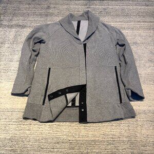 EUC cardigan/wrap in Heathered Medium Grey / Silver Spoon / Heathered Medium Grey
