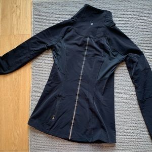 Cuffs fold down and has holes for thumbs. Closure is magnetic at neck. There are breathable size mesh panels at armpits and a small zippered pocket at the back.