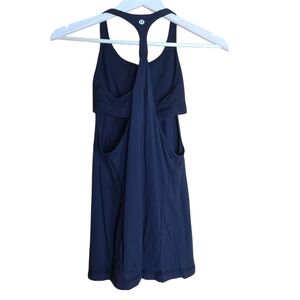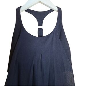Lululemon, black tank top with built in sports bra. T-back, slim fit, flared at the chest. Super Stretchy, comfortable and in great condition size 2. No tag but has size dot.