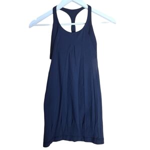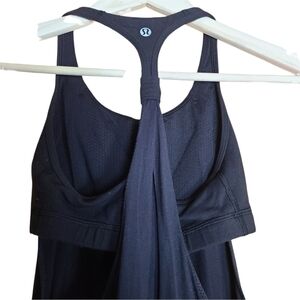Lululemon, black tank top with built in sports bra. T-back, slim fit, flared at the chest. Super Stretchy, comfortable and in great condition size 2. No tag but has size dot.