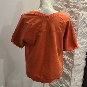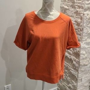Lululemon heathered orange crew neck short sleeve sweatshirt vneck in back Zippered pocket in front folded sleeve cuff Ribbed waistband with slit