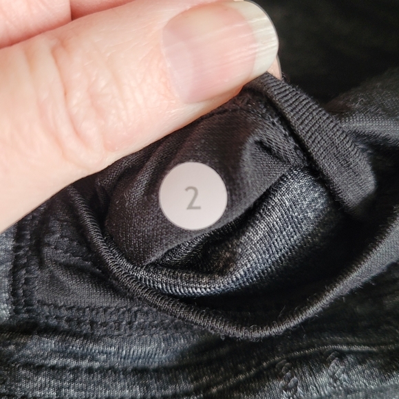 Low rise cropped leggings with ruching at the waistband and back of the legs. In very good used condition, extremely soft material, dark heathered grey