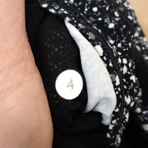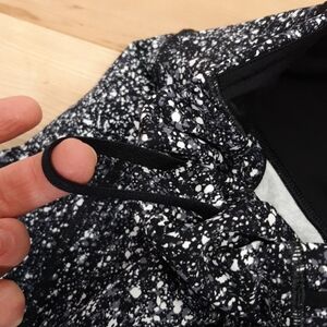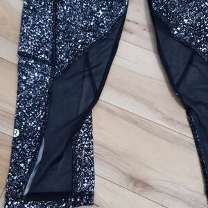 He's adorable splattered crops are an amazing workout companion. They have mesh panels on the back lower leg. They have side pockets, ruching at the back waistline and and endless drawstring for that secured fit. They have a great amount of compression and do not move during your hit workouts.