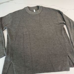 Stay warm and stylish with this green ribbed sweater. Perfect for any occasion.