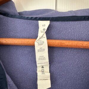 This Lululemon hoodie is purple with pleated details and navy polka dot trim. Heavy material with side pockets. Size 10. Preloved.