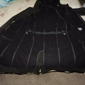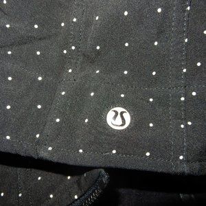 Lululemon black, long jacket with white polka dots on it. In great condition, no rips or stains. Has a slit on the bottom back, great for spring. Couldn't see a size, guessing a women's M.
