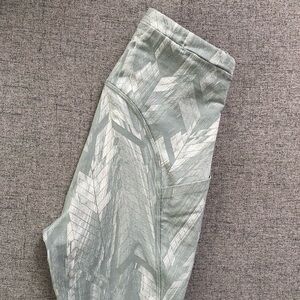 Lululemon calls this colour : Reverberate Chevron Jacquard Silver Blue White. It’s a mint green with white & silver. Excellent condition like new; these were only worn a few times then outgrown. These are stretchy and almost compression-like at the same time.