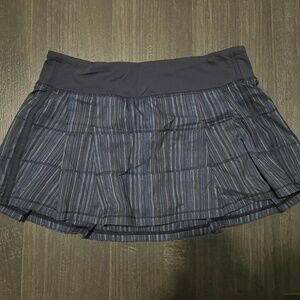 Excellent condition! Lululemon pace rival skirt in a blue, purple, grey stripe. Built in shorts and back pocket.