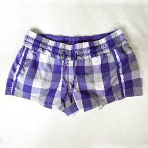 Lululemon plaid speed shorts with drawstring 30” waist Size 4 purple grey white
