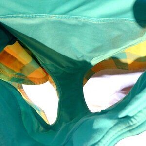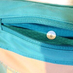 LULULEMON ATHLETICA plaid athletic shorts in orange blue plaid.Credit card or money pouch or keys pocket inside front waistband. k