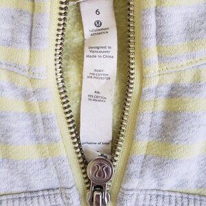 Yellow and grey striped zip up hoodie for sale. Excellent condition. Front pockets & thumbholes.
