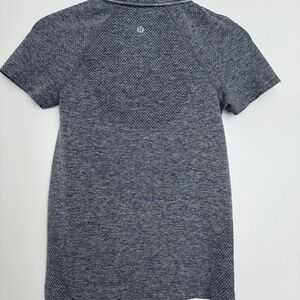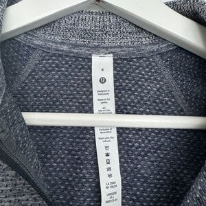 Short-sleeve polo shirt with zipper in grey, mint condition, size 4. Retail price $88 plus tax.