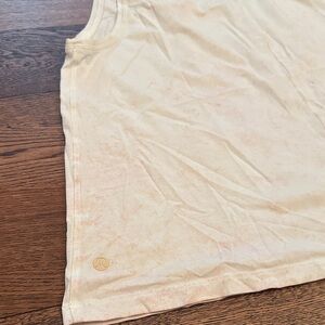 Cream coloured lululemon tank with slight pink acid wash pattern. Size 12. Good used condition.