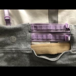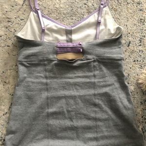 Lululemon tank, gray with purple straps. Adjustable built in bra. Size 4. Worn only a handful of times.