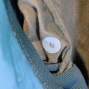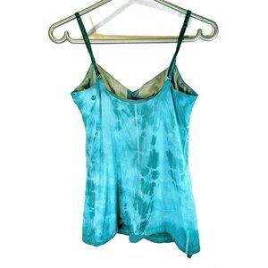 The Lululemon top is gathered at the front, has adjustable shoulder straps and an inner attached bra. The top is in very good pre-owned condition.
