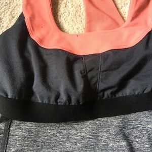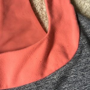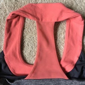 Lululemon halter top with a built in sports bra. Has some piling on the pink portion of the top, but otherwise in good condition! Size 4.