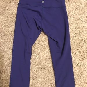 EUC Reversible lululemon wunder under crops size 4. Blue on one side purple on the other. Worn only 2 times.