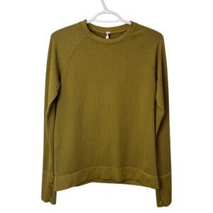 Lululemon yellow green Rest Less ribbed crew neck sweater size 10
