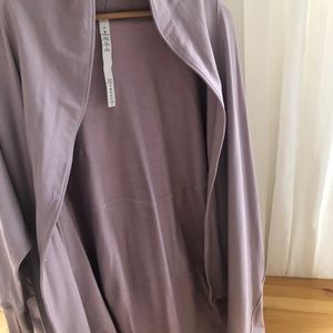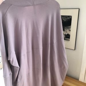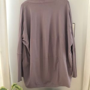 Beautiful quality, light mauve wrap sweater. It’s very stretchy and feels like being in a cocoon! It’s a size 4 but would fit up to an 8. In great condition