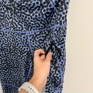 Lululemon All Sport Crop in the pattern ‘Ace Spot Lullaby Black’, a light periwinkle blue with a faded dot print.