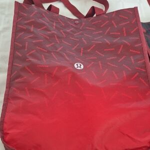 Chic and functional tote bag trio from Lululemon Athletica. Features bold red and black designs. Perfect for daily use.