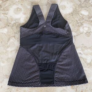 In very good preowned condition Lululemon Deep V Athletic Tank in black with white polka dots