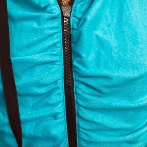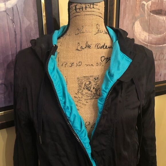 RARE Lululemon Lab Reversible Jacket Sample size M. Turquoise and Black. This was from Lululemon Labs as a sample piece. Zipper pull is not reversible so when worn with blue showing its difficult to zip up. Worn once. Excellent condition