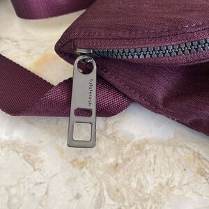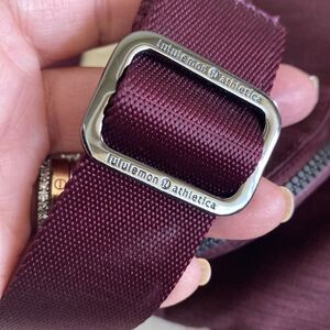 Lululemon maroon Crossbody fold over convertible fanny pack. Colour is black cherry. Bag measures 8.25” high x 9.75” wide and adjustable strap.