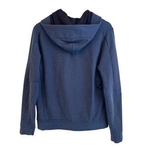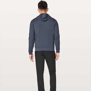 In very good condition. Lululemon Men's City Sweat full zip hoodie. In heathered true navy. This hoodie is made with breathable, four-way stretch French Terry fabric that keeps you feeling comfortable from workout to hang out. There is some natural fading but otherwise in great shape.