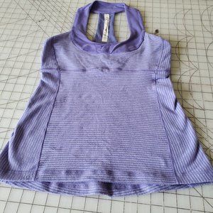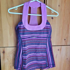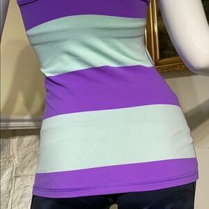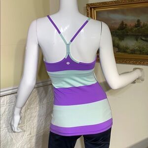 In very good preowned condition adorable Lululemon wide stripe racer back fitness tank top. Gorgeous colour combination of purple and robins egg blue. A beautiful and very flattering fit.