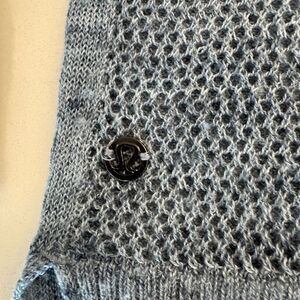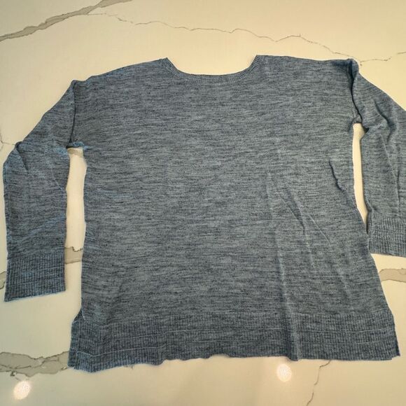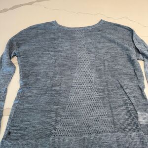 Cozy blue knit sweater with long sleeves. Perfect for layering. Needs a bit of love in the armpits, easy fix