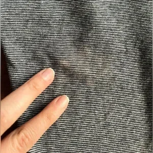 Black and grey stripe. I am unsure of the material but it is a very warm wool-like or a thermal material.