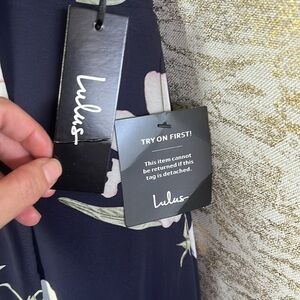 Luluโs All Mine Navy Blue Floral Print High-Low Wrap Dress Size XS