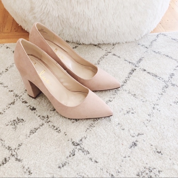 Nude pink colour, block heel, faux suede! In great condition. Size 5.5!