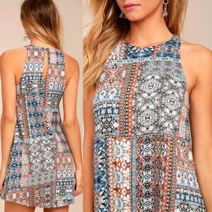 Lulus Bohemian Print Mini Swing Dress Size XS Festival Woven Made in USA Design