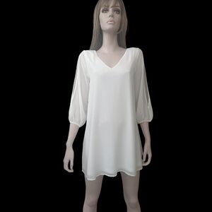 Lulu's Chiffon Cold Shoulder Shift Dress Tunic Wedding open sleeve Flowy Angelic