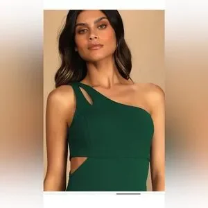 Lulu's Dark Green One-Shoulder Maxi Dress